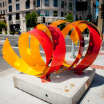 You never know what you’re going to find out until you try the app. You might learn, for instance, that Timeless Joy, the sculpture of a hummingbird that sits near the corner of Main Street and Third Street, is made completely out of old motorcycle parts. Then later find out the idea behind Your cube, sir, the sculpture of a giant stick figure who is holding a red cube upwards, towards the sky.